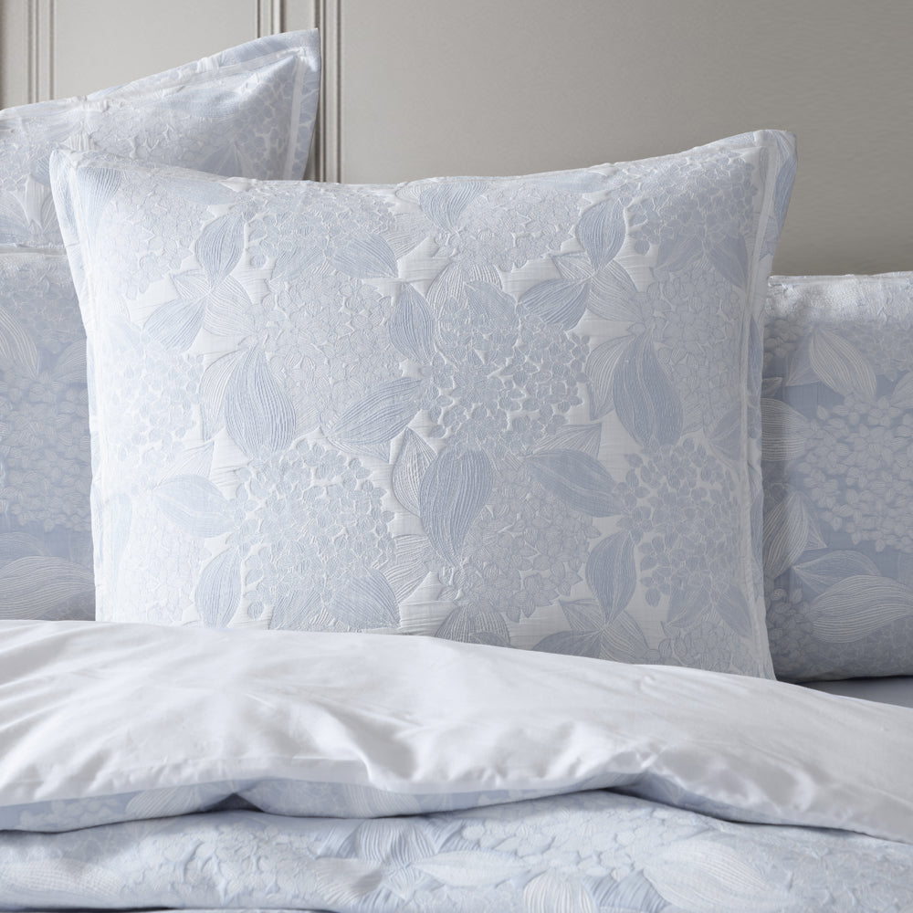 Private Collection Hydrangea Chambray European Pillowcase is a botanical masterpiece that brings a touch of nature into your bedroom. The stylised floral, characterised by simple yet elegant line work offers a classic construction the exudes timeless charm. The tailored self-flange, adorned with a grosgrain tape adds a refined finishing touch.