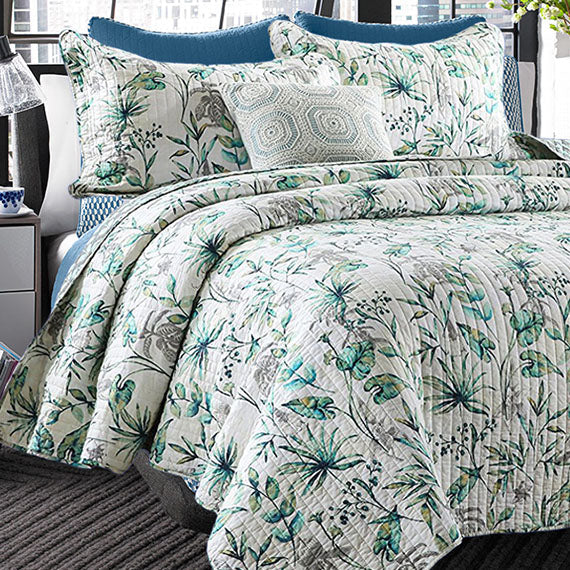 Classic Quilts Island Dream King Single Bed Coverlet Set features a stunning tropical foliage design on a white background. This set includes a matching pillowcase. This coverlet reverses to the same design.