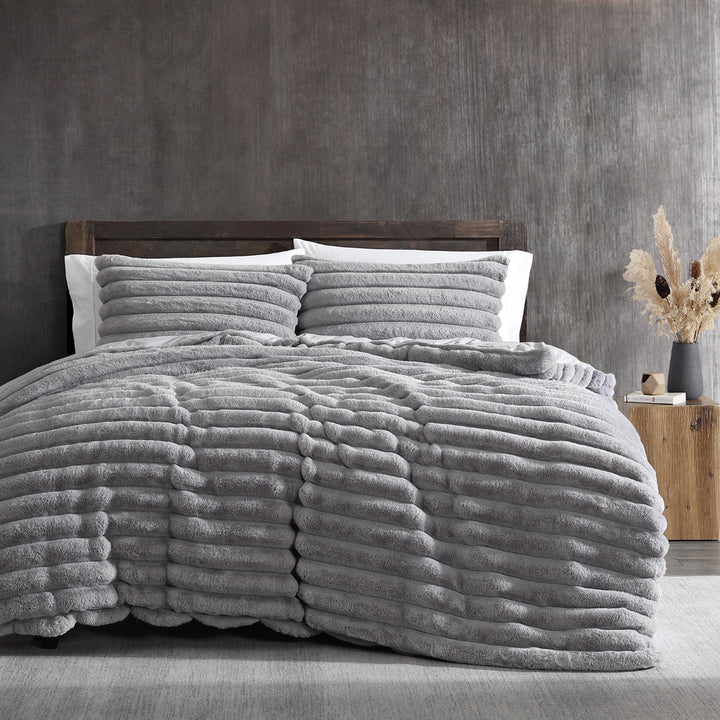 Jax Faux Fur Smoke Queen Bed Quilt Cover Set is bold and plush for the ultimate comfort this season. This soft smokey colour will bring warmth to your bedroom style.