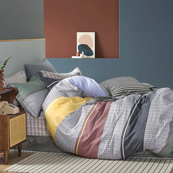 Ardor Jonty Multi King Bed Quilt Cover Set features large panel stripes and checks. The multi colours will make home styling easy this season.