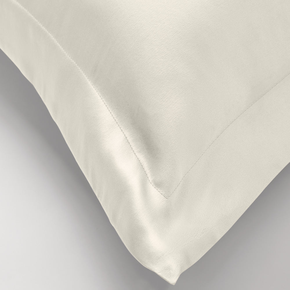 Our Lanham silk tailored standard pillowcase in sand defines beauty sleeping Silk is luxuriously smooth to touch, which makes sleeping on it a must. The softness of our 100% mulberry silk pillowcase allows the skin and hair to slide when you sleep, whilst its natural fibres allow your skin to breathe, minimising irritation.