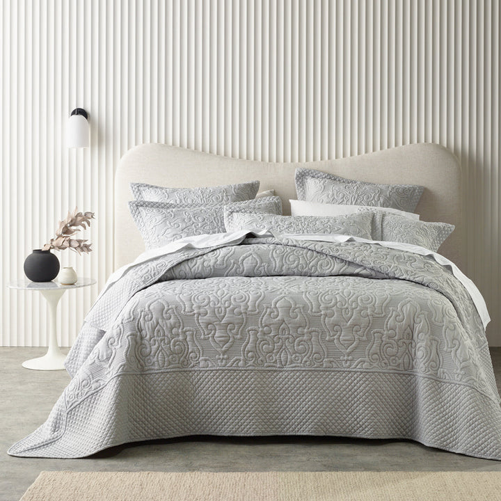 Bianca Laurent Silver Double Bed Bedspread Set will add class and sophistication to your bedroom. A beautiful damask design finished with an elegant diamond quilted border. A bedspread for the discerning and will be cherished for many years to come.
