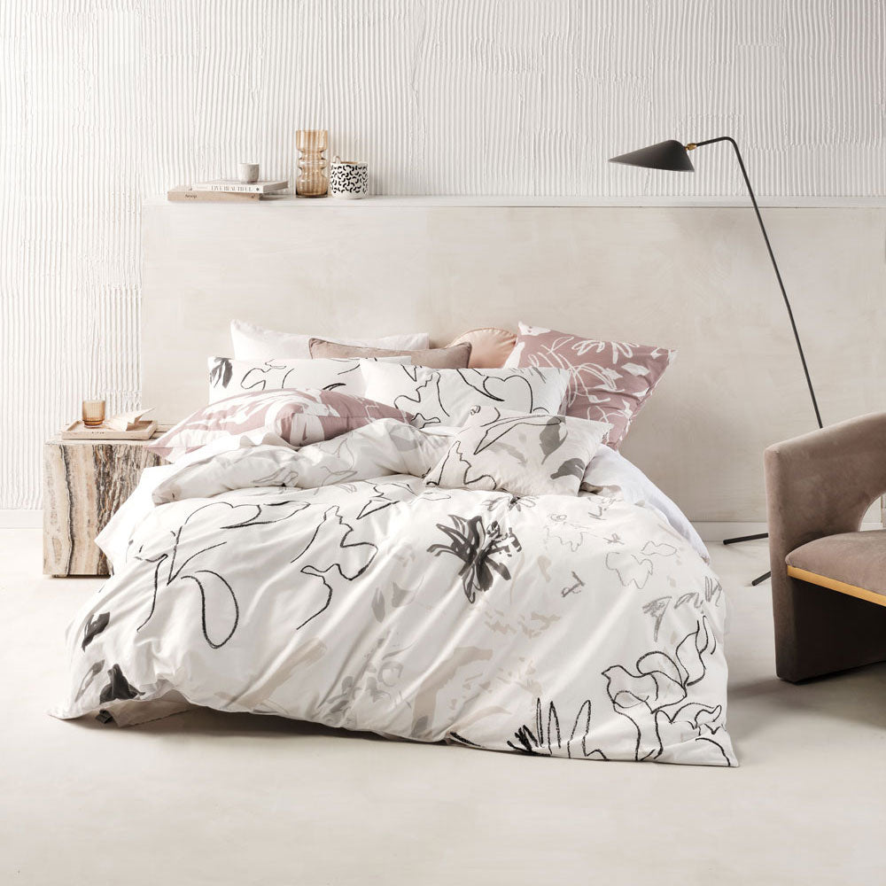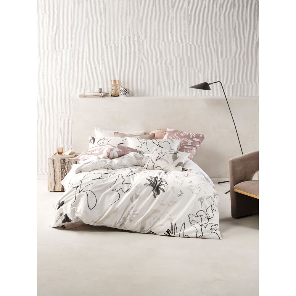 Linen House Lennox Neutral Super King Quilt Cover Set features a fluid illustration-style design in a soft, neutral palette. This printed and textured cotton set is designed to seamlessly fit into an array of interior styles, and pairs perfectly with plains, checks and textures. Lennox looks even more inviting adorned with its coordinating European pillowcases and cushion! This quilt cover reverses to a plain white.
