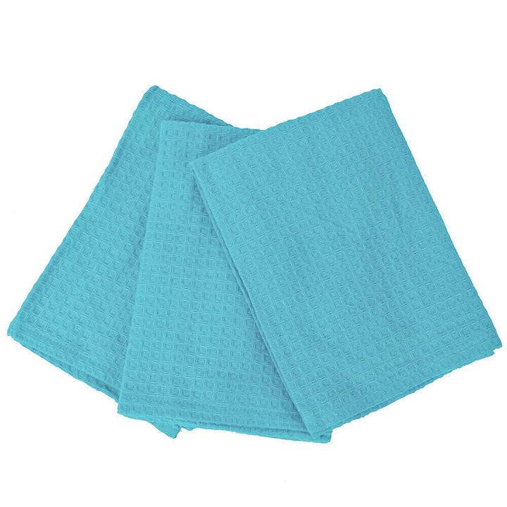 Rans London Waffle Island Paradise Blue 3 Pack Tea Towels is apart of a range of absorbent tea towels in plain dyed colours that come in a number of colours to suit a variety of kitchens and tastes. These high-quality kitchen accessories will keep you dry while bringing some style into your home. 100% Cotton keeps your kitchenware lint and streak free, made on a hand loom for extra strength, softness and absorbency.