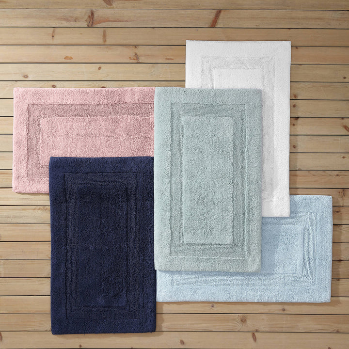 Add a touch of coastal luxury to your bathroom with the Tommy Bahama Longbranch reversible large bath mat in petal pink. Made from 100% tufted cotton, it’s super soft, absorbent, and durable, featuring elegant piping around the edges for a refined finish. Reversible design for twice the style and comfort!