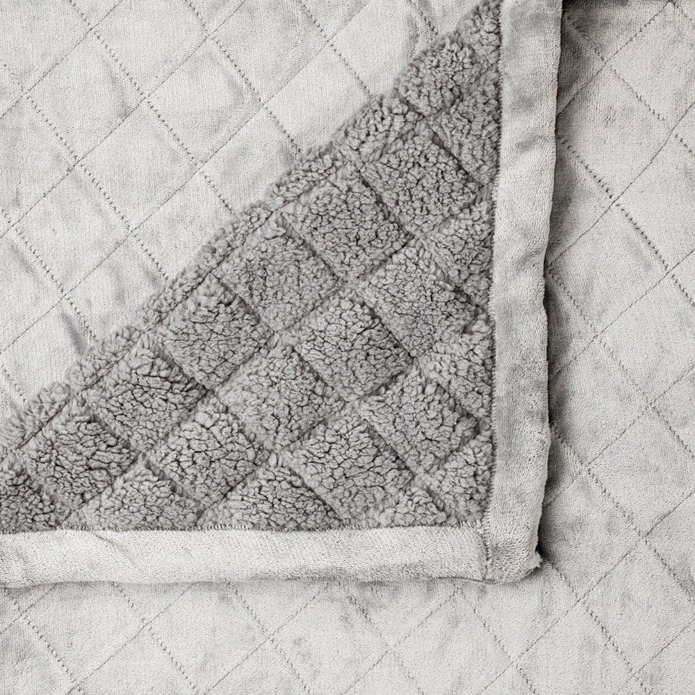 Bianca Mansfield Sherpa Velvet Single / Double Bed Blanket in Aluminium that also suits King Single size beds is the ultimate blanket for this winter. Mansfield, which takes its name from the stunning Victorian high country is made from super soft velvet that has been beautifully quilted to create a stylish blanket. The snuggly sherpa reverse makes it very warm and the perfect blanket to cuddle up with.