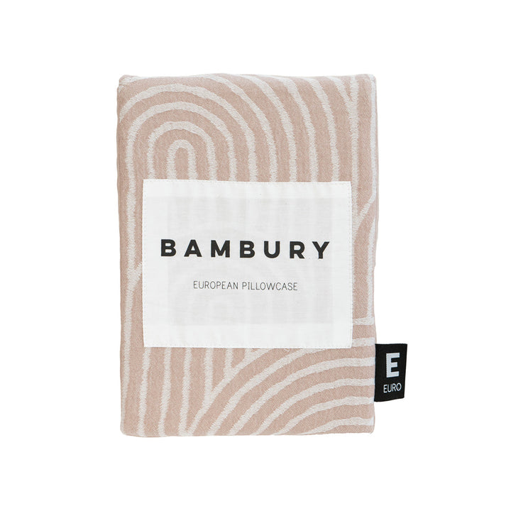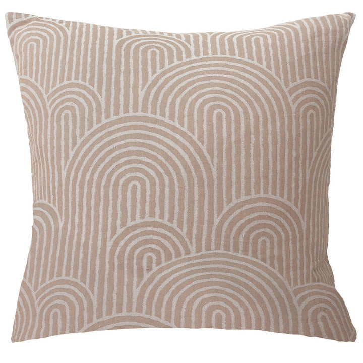Bambury Merida European Pillowcase showcasing a sophisticated woven jacquard design with an arch pattern in muted clay and ivory tones. Crafted from premium cotton, its luxurious feel and elegant design effortlessly enhance any bedroom. A coordinating quilt cover set is also available while stocks last.