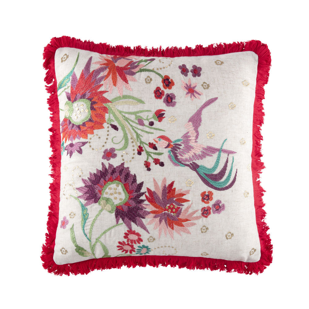 Adorned with an on-trend folk inspired design and enhanced by sequin detailing, the KAS Milly Multi Square Filled Cushion offers an ornate aesthetic. Bordered by fringe detailing, the natural coloured base cloth is accentuated by coloured embroidery that will complement both traditional and modern looks.