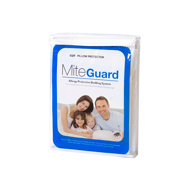 MiteGuard Standard Pillow Protector is designed to act as this barrier, it features a micron dust filter membrane that is sandwiched between two layers of inert fabric giving premier protection. MiteGuard totally encases your mattress, quilt and pillow; it is soft, extremely lightweight, durable and air-permeable, allowing body moisture and heat to pass through the fabric providing comfort and protection all night long. The products can also help overcome the need for regular hot washing of quilts and pillows and it allows the use of natural fillings (in pillows, mattresses and quilts) such as wool and feathers.