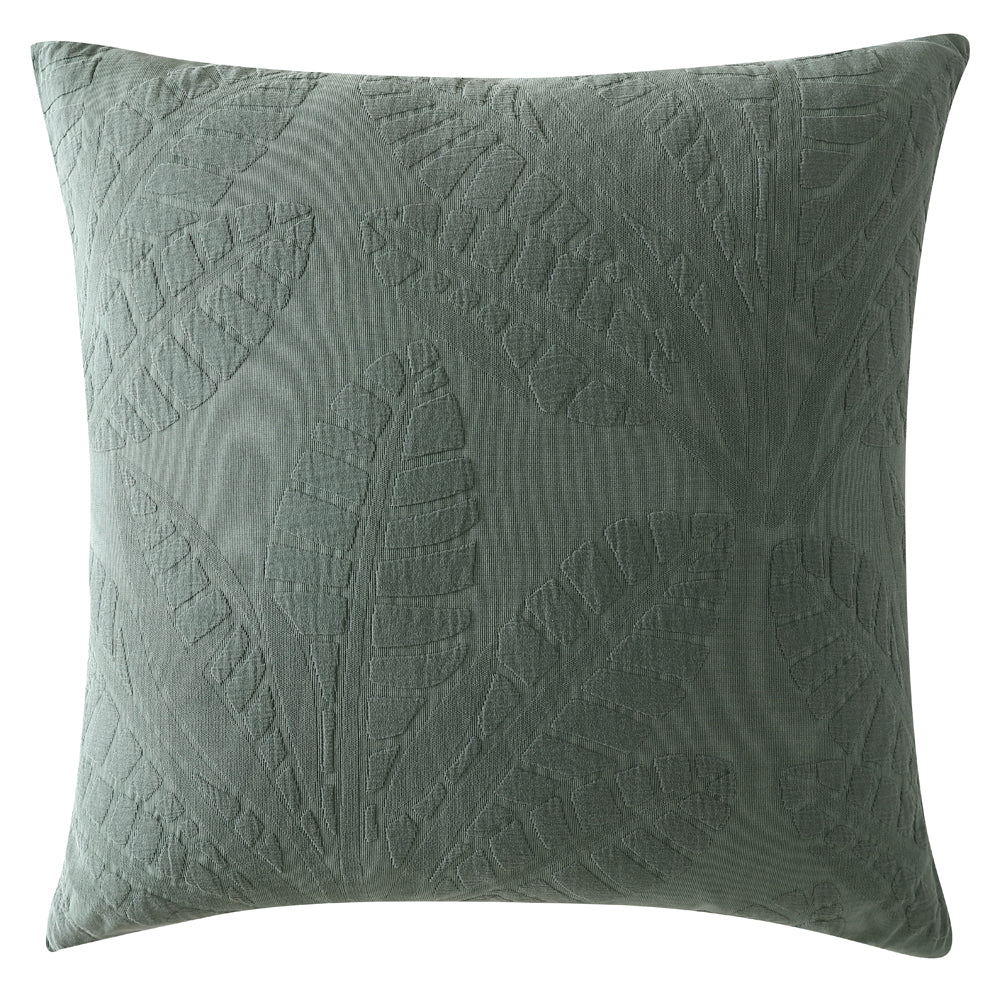 Moana Cilantro European Pillowcase transforms your bedroom into a tropical paradise with its captivating palm leaf pattern. The jacquard matelassé weave adds rich texture and visual depth to this piece-dyed pillowcase. The stonewashed finish in shades of cilantro green introduces additional layers of sophistication. Finished with a clean knife edge, Moana creates a serene and inviting escape in your space.
