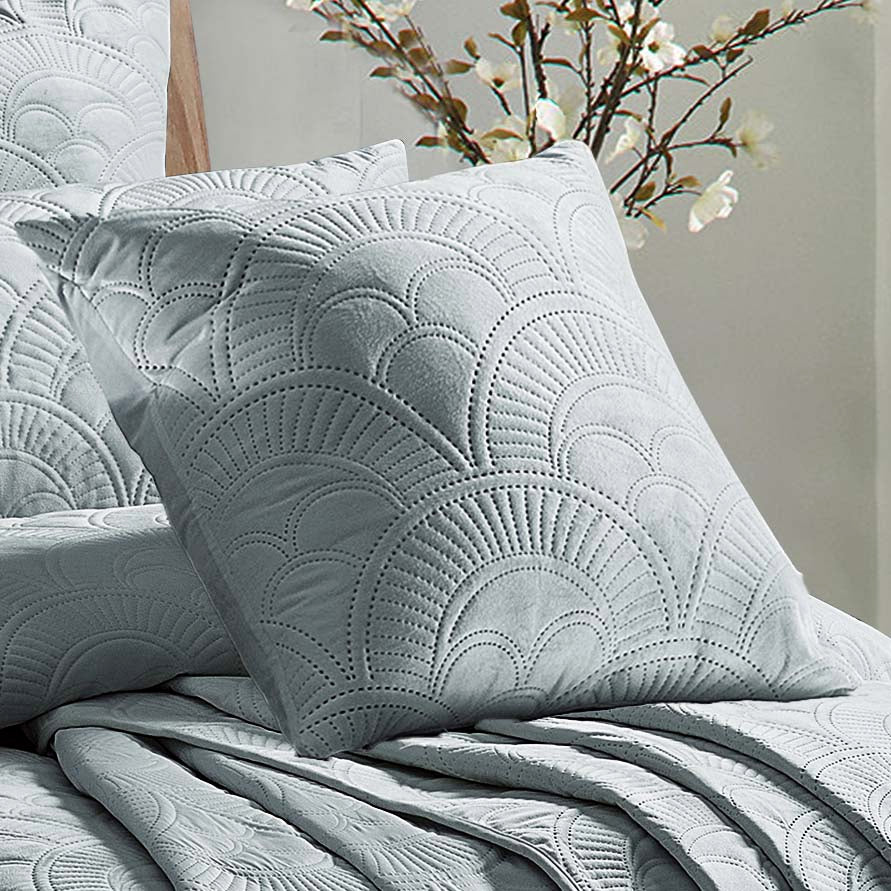 Concierge Mystique Grey European Pillowcase invites a contemporary velvet touch to your bedroom. This quilted European pillowcase celebrates the beauty of curved lines by creating a scale-like motif. Made from soft velvet, this pillowcase is the perfect addition. Complete the look by introducing the matching Quilt Cover Set and European Pillowcase. Also available in Blush, Ocean and White.