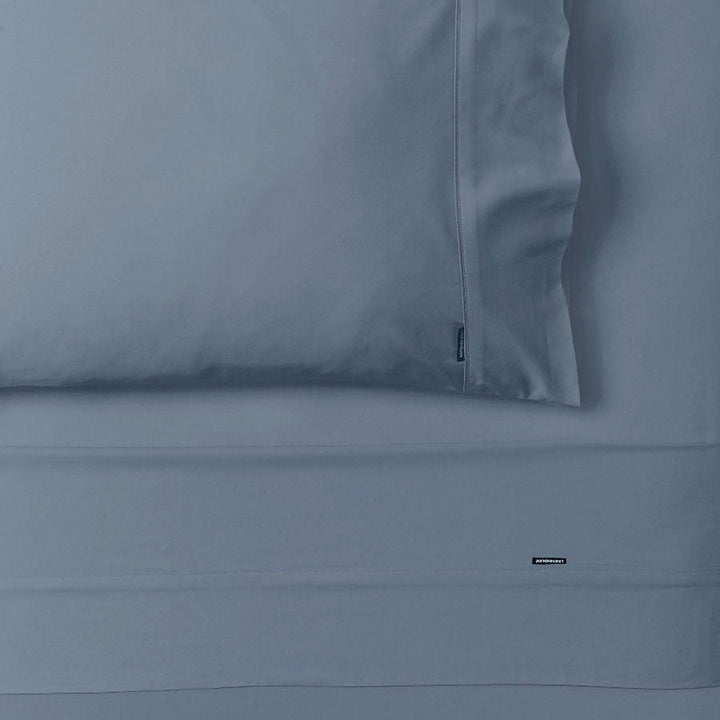 Linen House Nara Bluestone Bamboo Cotton Queen Bed Sheet Set is made from a super-soft 400 thread count bamboo/cotton. Smoother than silk with a beautiful feel and drape, this high quality sheet set boasts a sateen weave throughout. Favourable to allergy suffers for its antibacterial properties, and happens to launder like an absolute dream, quick drying to get have it back on your mattress asap. Nara's fitted sheet enjoys a 50cm wall while the flat sheets and pillowcases are both cuffed and piped for a dapper finish. Nara happens to one of our most sought-after sheet sets for oh-so-many reasons.