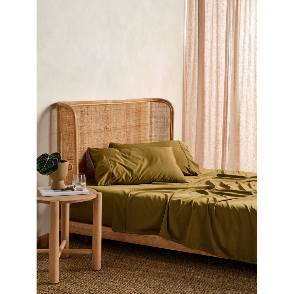 Linen House Nara Bronze Bamboo Cotton Super King Sheet Set is made from a super-soft 400 thread count bamboo/cotton. Smoother than silk with a beautiful feel and drape, this high quality sheet set boasts a sateen weave throughout. Favourable to allergy suffers for its antibacterial properties, and happens to launder like an absolute dream, quick drying to get have it back on your mattress asap. Nara's fitted sheet enjoys a 50cm wall while the flat sheets and pillowcases are both cuffed and piped for a dapper finish. Nara happens to one of our most sought-after sheet sets for oh-so-many reasons.