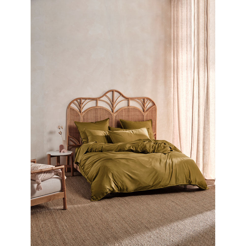 Linen House Nara Bronze Bamboo Cotton Double Bed Quilt Cover Set is smoother than silk and made from high-quality, 400 thread count bamboo/cotton, featuring a luxe sateen weave and is trimmed with stitched borders. Favourable to allergy sufferers for its antimicrobial properties, Nara is an unrivalled bed linen option for those who adore the beautiful feel and drape of silk-like threads. Luxuriate in the full experience by coordinating your new quilt cover set with matching european pillowcases, sheet sets and standard pillowcases in a range of irresistible colours - mix and match highly encouraged!