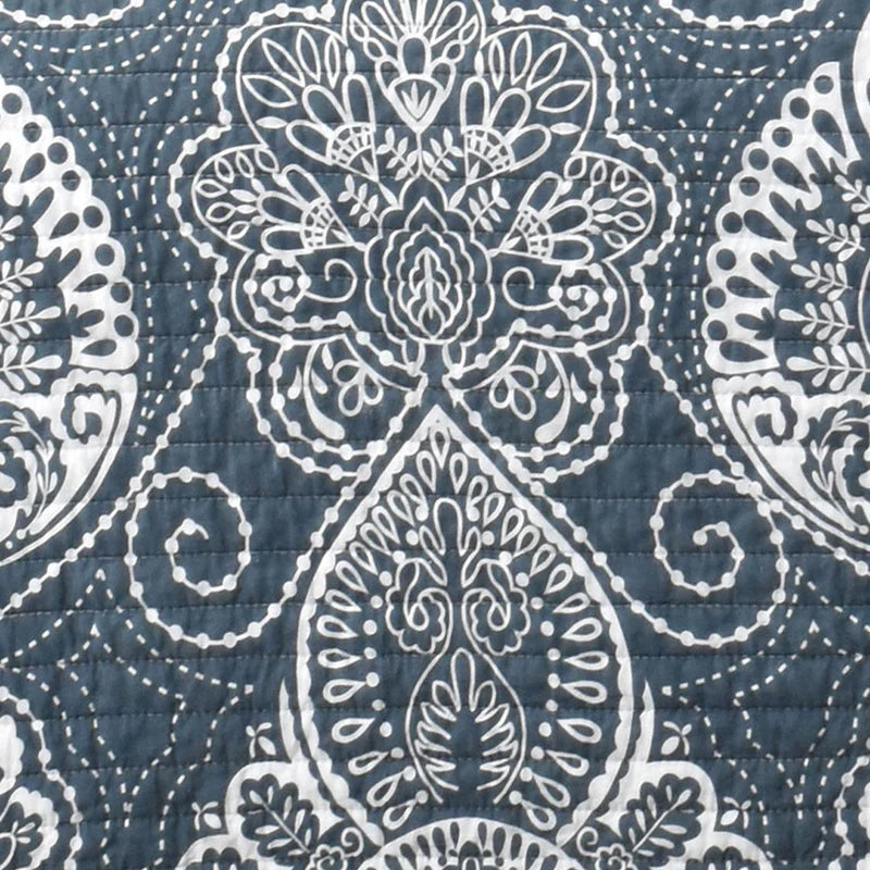 Classic Quilts Night Reflections Queen Bed Coverlet Set is a perfect blend of elegance and comfort for your bedroom. Made from 100% cotton, this slightly quilted coverlet features an intricate white floral and paisley pattern against a rich, dark blue background. The luxurious 260GSM fill ensures warmth and coziness, while the detailed design adds a sophisticated touch to your decor. Ideal for creating a chic and inviting atmosphere, this coverlet pairs beautifully with matching European pillowcases, completing the refined look of your bedroom sanctuary.