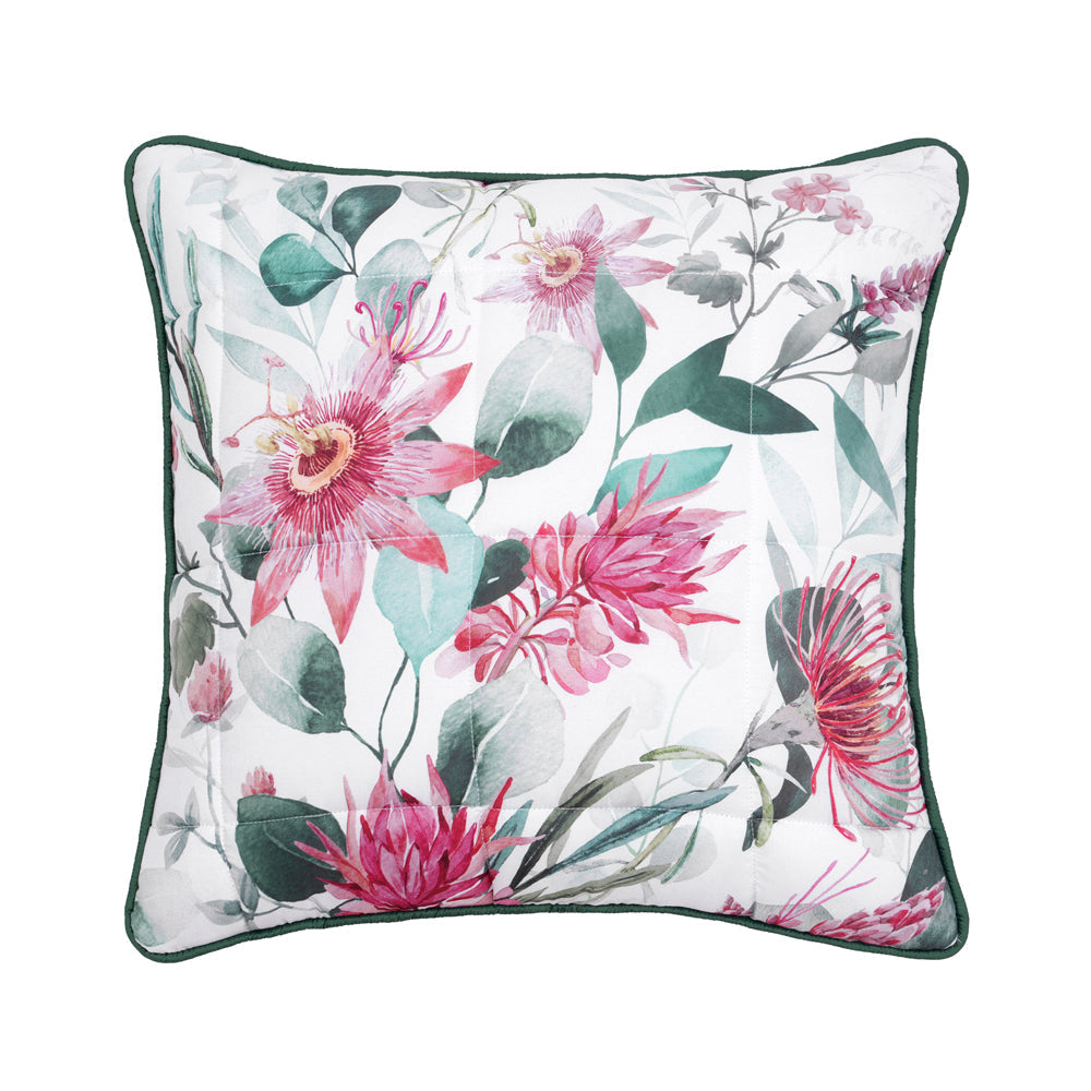 Bianca Nikita White Square Filled Cushion features delightful, blossoming proteas contrast beautifully against the on trend neutral green tones. The Nikita cushion will complement your sofa or bedroom setting.