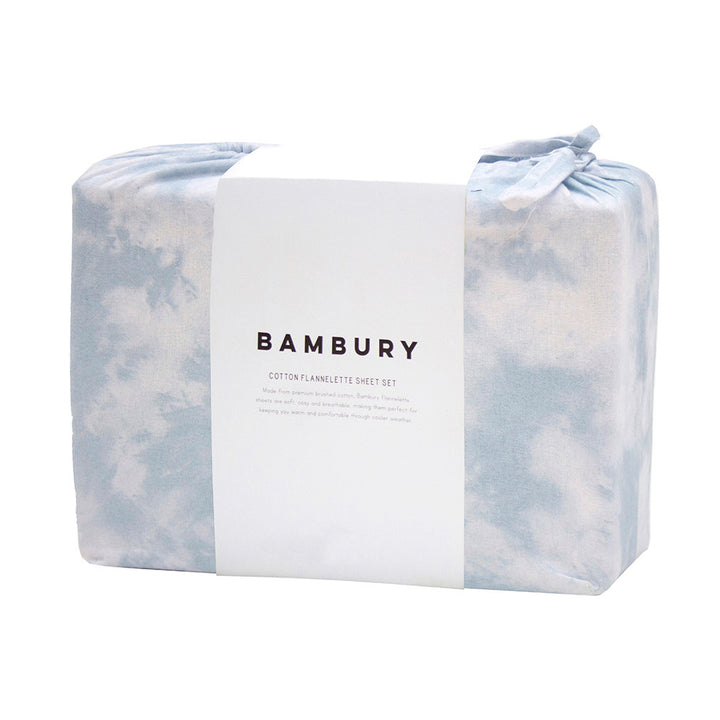 Bambury Nimbus Flannelette Single Bed Sheet Set features a fabric that has been brushed on both sides after weaving which creates a wonderful texture and helps to hold in warmth. The Nimbus print features a blue and white tie-dyed pattern that mimics soft floating clouds!