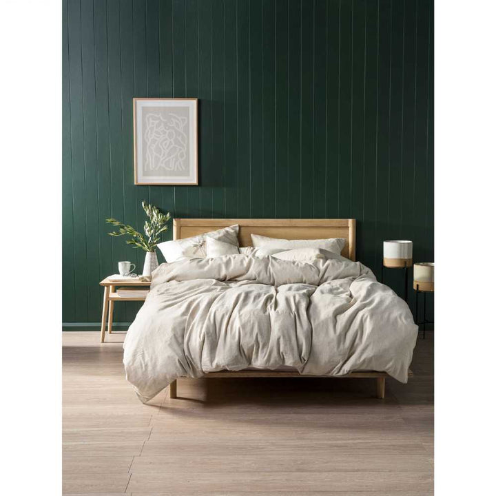 Linen House Nimes Natural Queen Bed Quilt Cover Set promises suitability all year-round. Pre-shrunk and pre-washed, it's soft-to-touch yet more durable than cotton. Nimes launders well, softens further over time and requires little to no ironing. Simply tailored, this set enjoys linen all over, allowing its beautifully natural fabric to speak for itself.