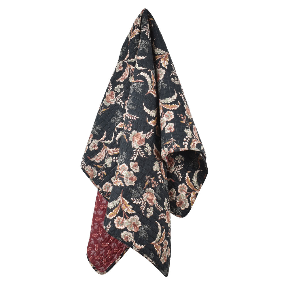Classic Quilts Onica Throw features a beautiful multicoloured floral design on a dark quilted base. Reverses to a paisley design in rich burgundy tone. The throw is printed on an all cotton outer, and contains a light-loft cotton fill for breathability and comfort.