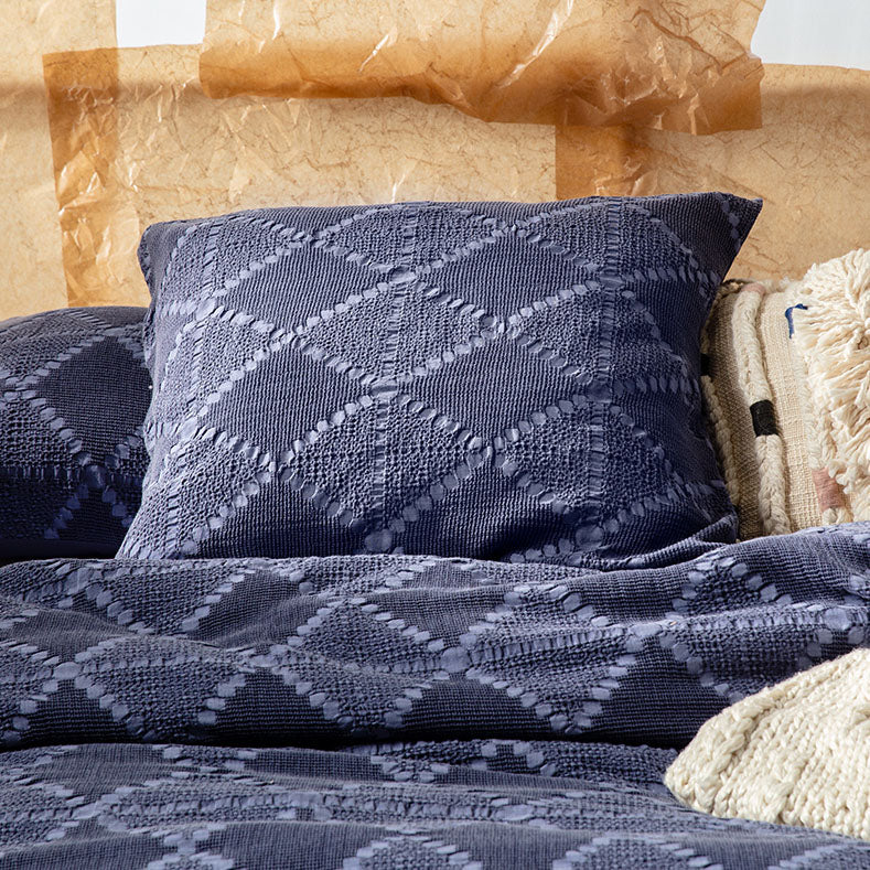 Offering a contemporary twist to the cult-classic denim look, the Orion Blue European pillowcase showcases a broad, stonewashed-waffle diamond pattern. Complete the look with the Orion quilt cover set.