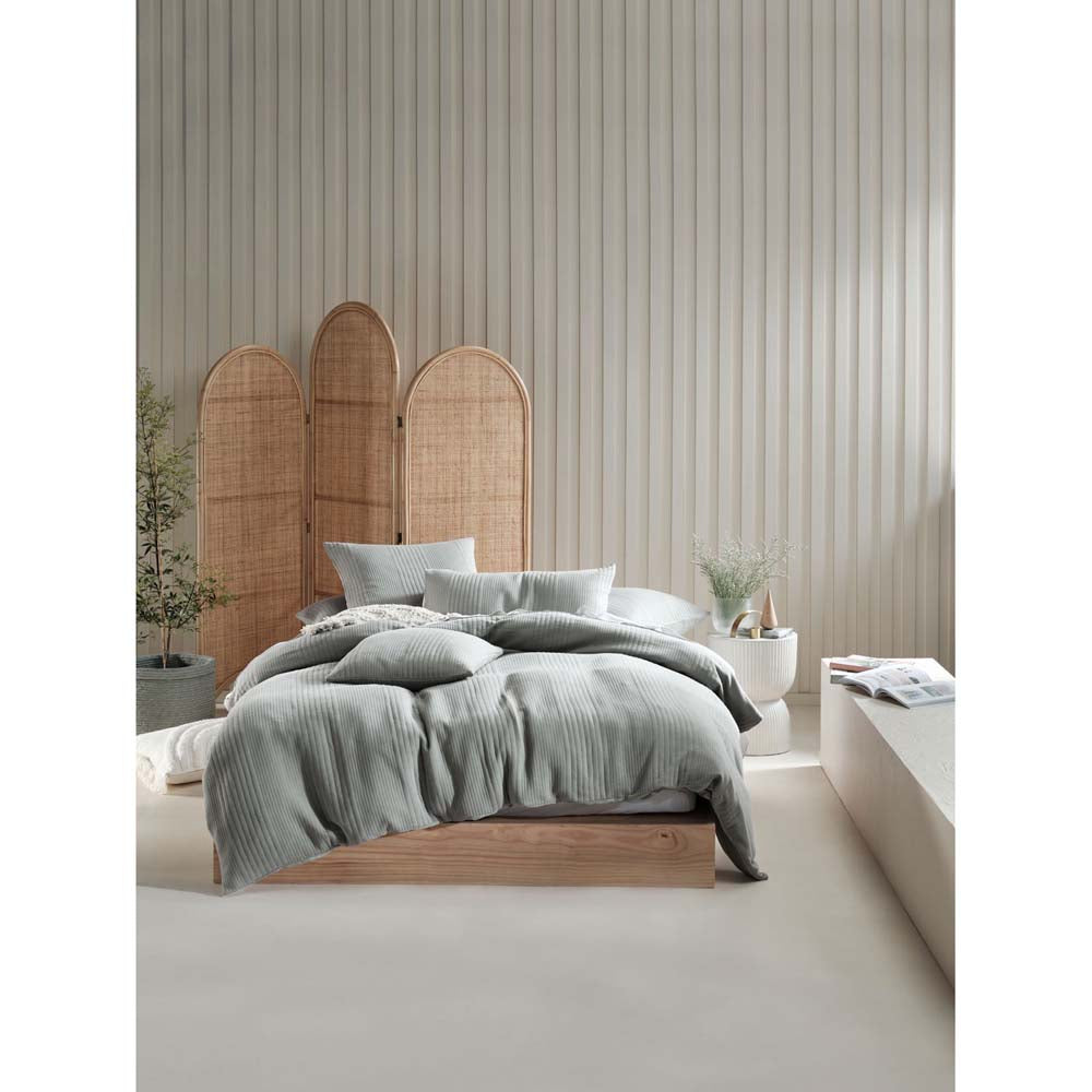 Linen House Osmond Smoke Single Bed Quilt Cover Set enjoys a striped design made from quilted, marled knitted jersey. Super soft against your skin! Complete with a light polyester fill for additional warmth and comfort, this easy-living aesthetic is perfect for any age! Complement this look with its coordinating European pillowcases and cushion.