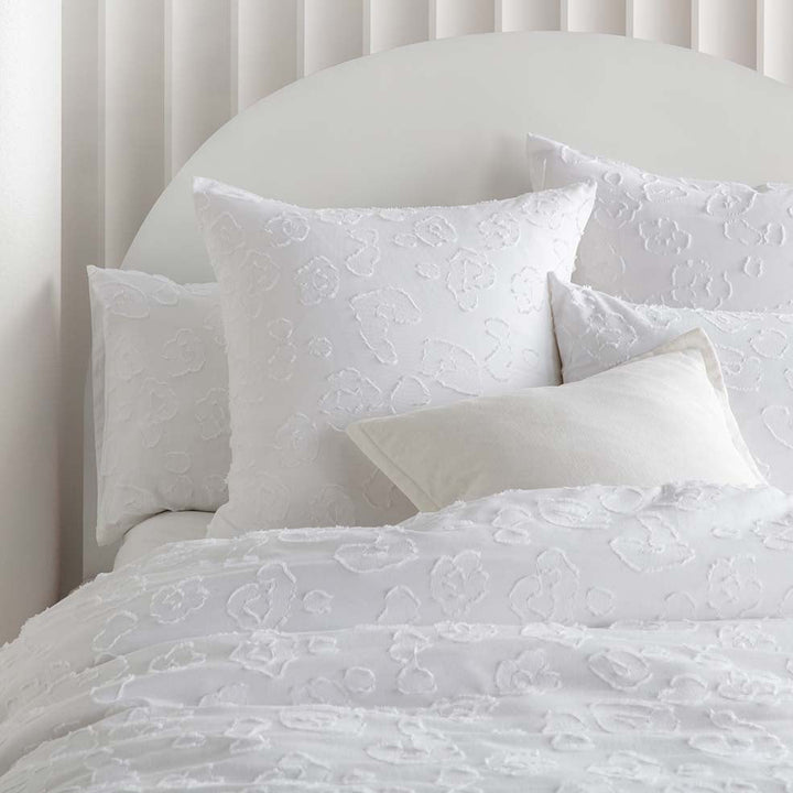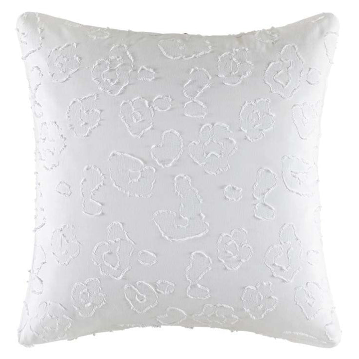 KAS White Perry White European Pillowcase welcomes the wild side into your bedroom. Crisp cotton is playfully accented in leopard spots with a raw edge detail, resulting in a trendy, yet subtle take on animal print. Complete the look with the Perry quilt cover set.