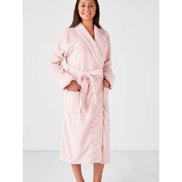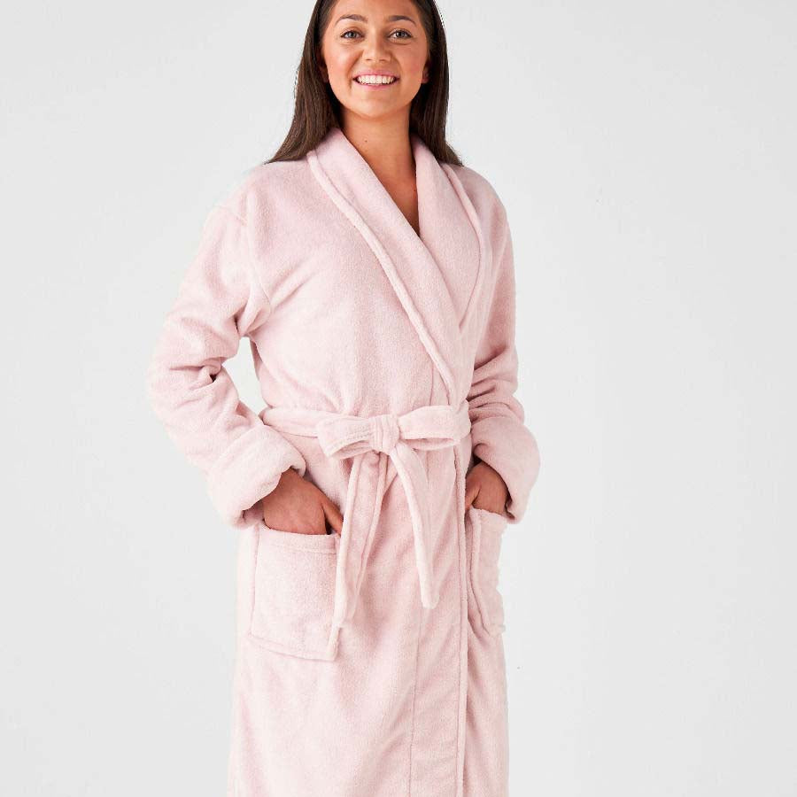 Linen House Blush One Size Fits Most Robes are made from a luxuriously soft and absorbent fabric for all your comfort needs. This easy-care, peel-free Plush robe is made for adults. Complete with a belt and hand pockets, it comes in four colours: white, blush, charcoal and leopard.