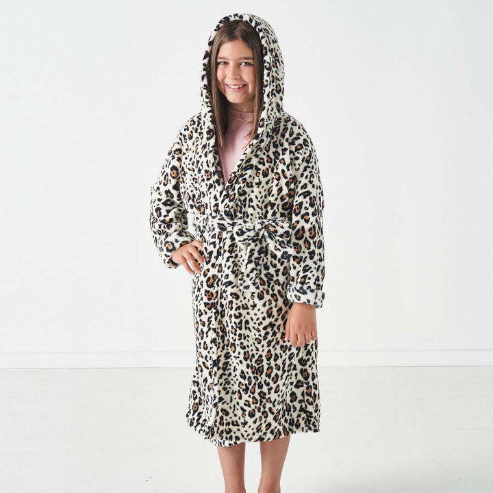 Hiccups Plush Leopard Kids Small Size 4 Robes is made from a luxuriously soft and absorbent fabric for all your comfort needs. This easy-care, peel-free plush robe is made for kids and tweens. Complete with a belt and hand pockets, it comes in three sizes: small (size 4), medium (size 6) and large (size 10).