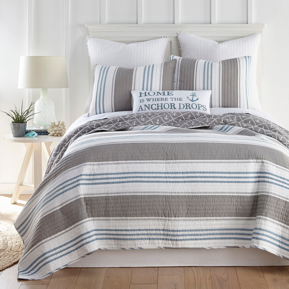 Classic Quilts Province Super King Coverlet Set features a stunning striped pattern. With a grey and blue striped design, this homely pattern embraces a more traditional style and puts a modern twist on it. It reverses to a grey coloured pattern that has anchors. Made with a lovely soft 100% cotton fabric and filled with a 260GSM cotton filling, this coverlet will be an amazing addition to any bedroom.