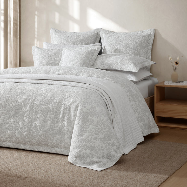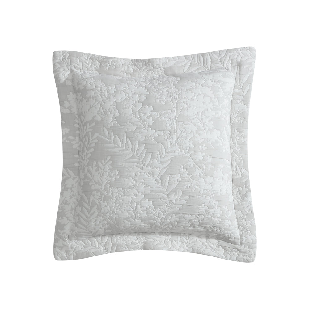 The Quinn Silver Square Filled Cushion. Immerse yourself in nature with this native Australian foliage inspired cushion. Simple silhouettes are highlighted by the use of solid block colours. The classic woven structure creates a modern matte appearance.