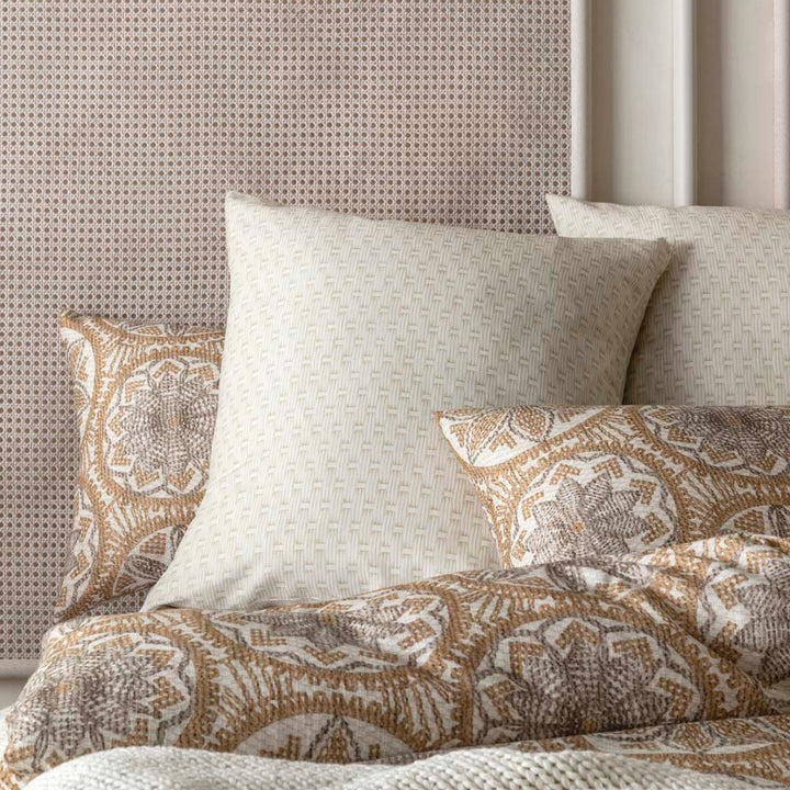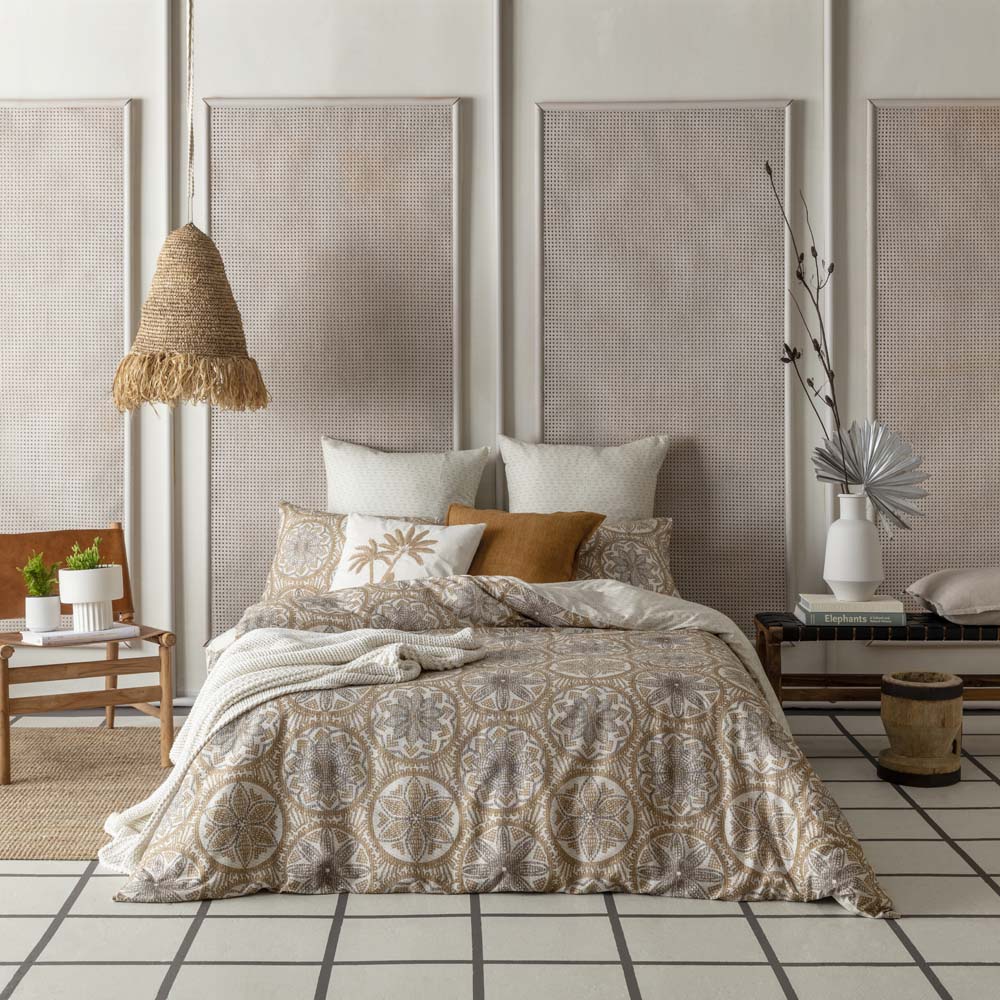 KAS Rafia Multi Super King Quilt Cover Set is inspired by the geometric patterns of Middle Eastern architecture. This quilt cover set will help create a relaxed and worldly aesthetic in your home. Crafted from luxurious cotton yarns in a neutral and calming colour palette, each tile in the pattern is hand-drawn to create endless visual interest. The reverse features a gentle ikat diamond pattern for a distinguished finish.