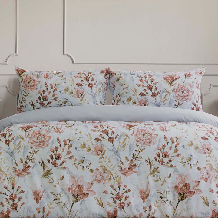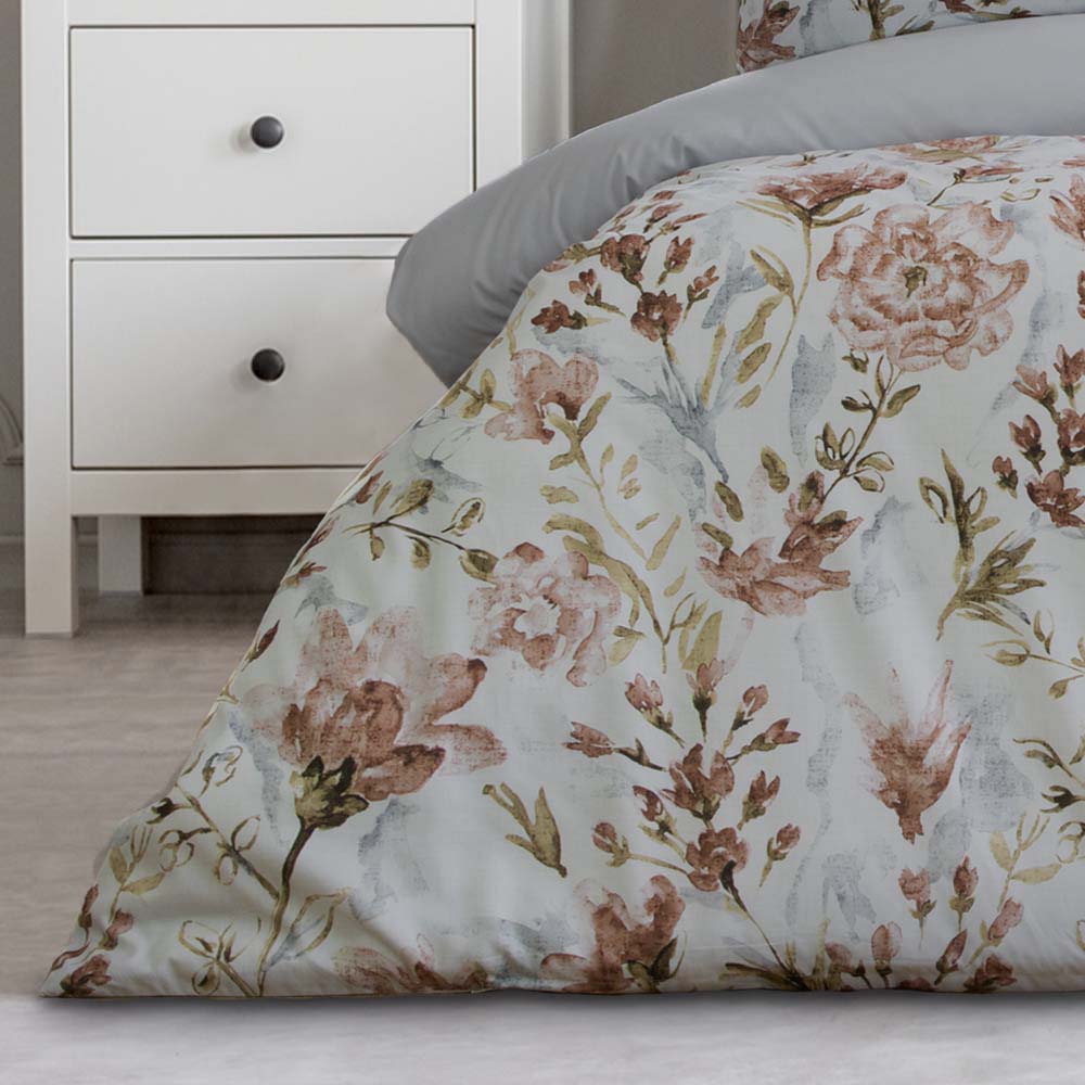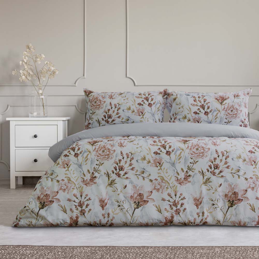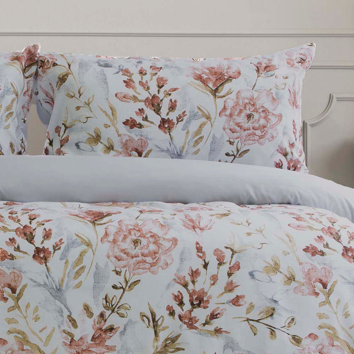 Ardor Boudoir Rhea Multi Queen Bed Quilt Cover Set enjoys several different blossoms coming together in harmony as they would in a bouquet. The reverse offers a plain dyed soft fabric to compliment the floral design.