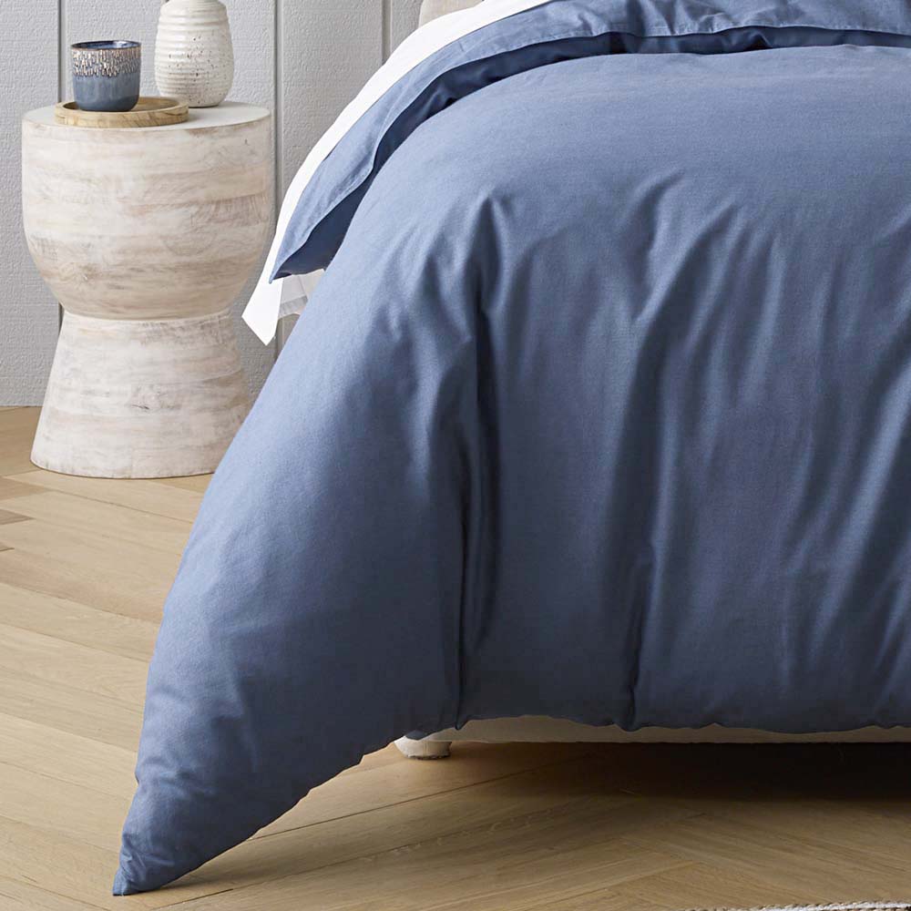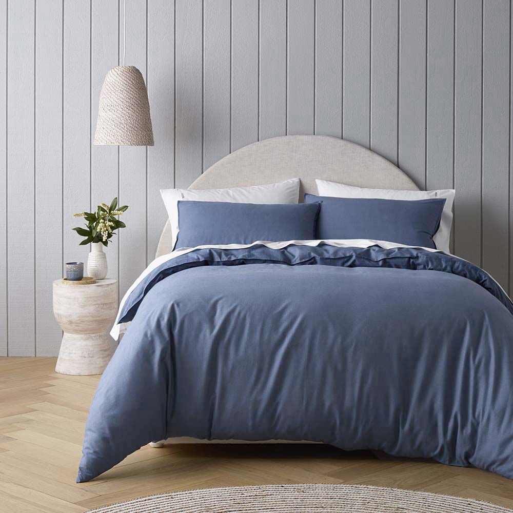 Bianca Riviera Blue King Bed Quilt Cover Set is made from prewashed, organic cotton. The combination of a classic colour and an easy-care fabric, makes this quilt cover set absolutely perfect for a chic bedroom style. Also available in Green, Charcoal and White.