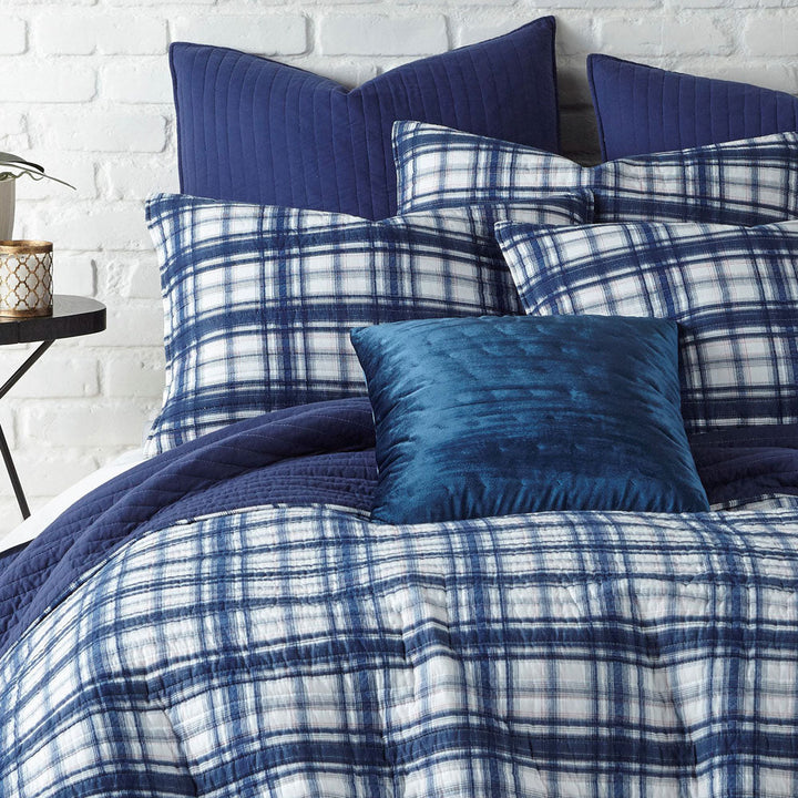 Classic Quilts Robin Plaid Super King Coverlet Set features a beautiful plaid pattern in a white and blue. Printed on an all cotton outer, this pillowcase contains a light-loft cotton fill for breathability and comfort. The reverse is a plain dyed navy to ensure that the coverlet coordinates with your bedroom.