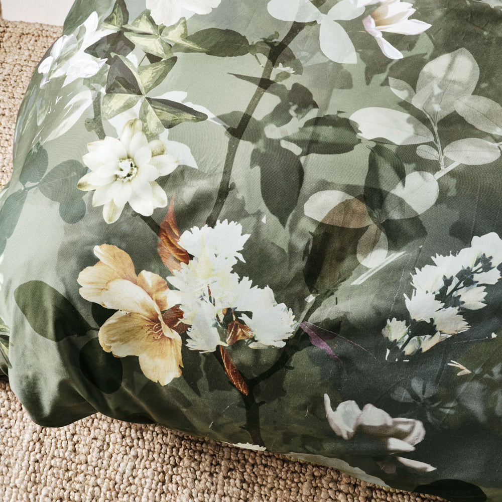 Linen House Rosalia Jade Double Bed Quilt Cover Set features a mélange of botanical photographs, Rosalia is a jade-hued darling that brings all your favourite garden delights together on luxe cotton sateen. Pair this beauty with its coordinating European pillowcases and cushion, both in printed velvet, to complete its aesthetic.