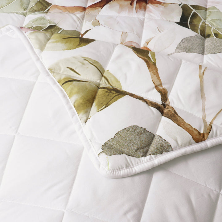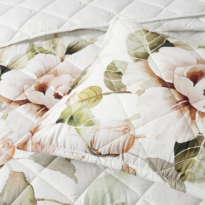 Bianca Rosalia White Single / Double Bed Coverlet Set, spring has sprung with Rosalia. Picturesque florals in delicate neutral hues are perfectly placed over the bed. Featuring a classic diamond quilting pattern which amplifies the elegance of this coverlet. Tailored edge pillowcases add the finishing touch to such a beautiful design.