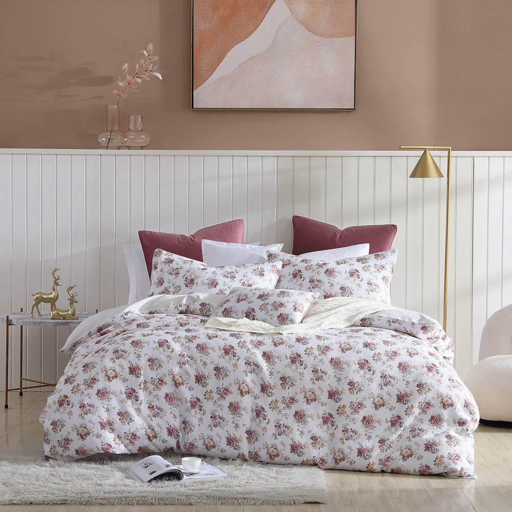 Rosette Plum Quilt Cover Set | Queen Bed