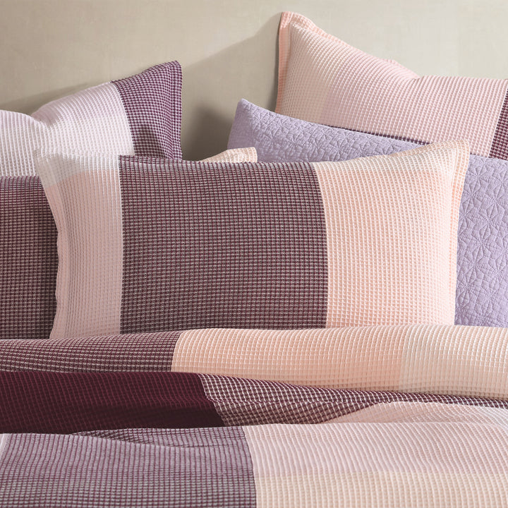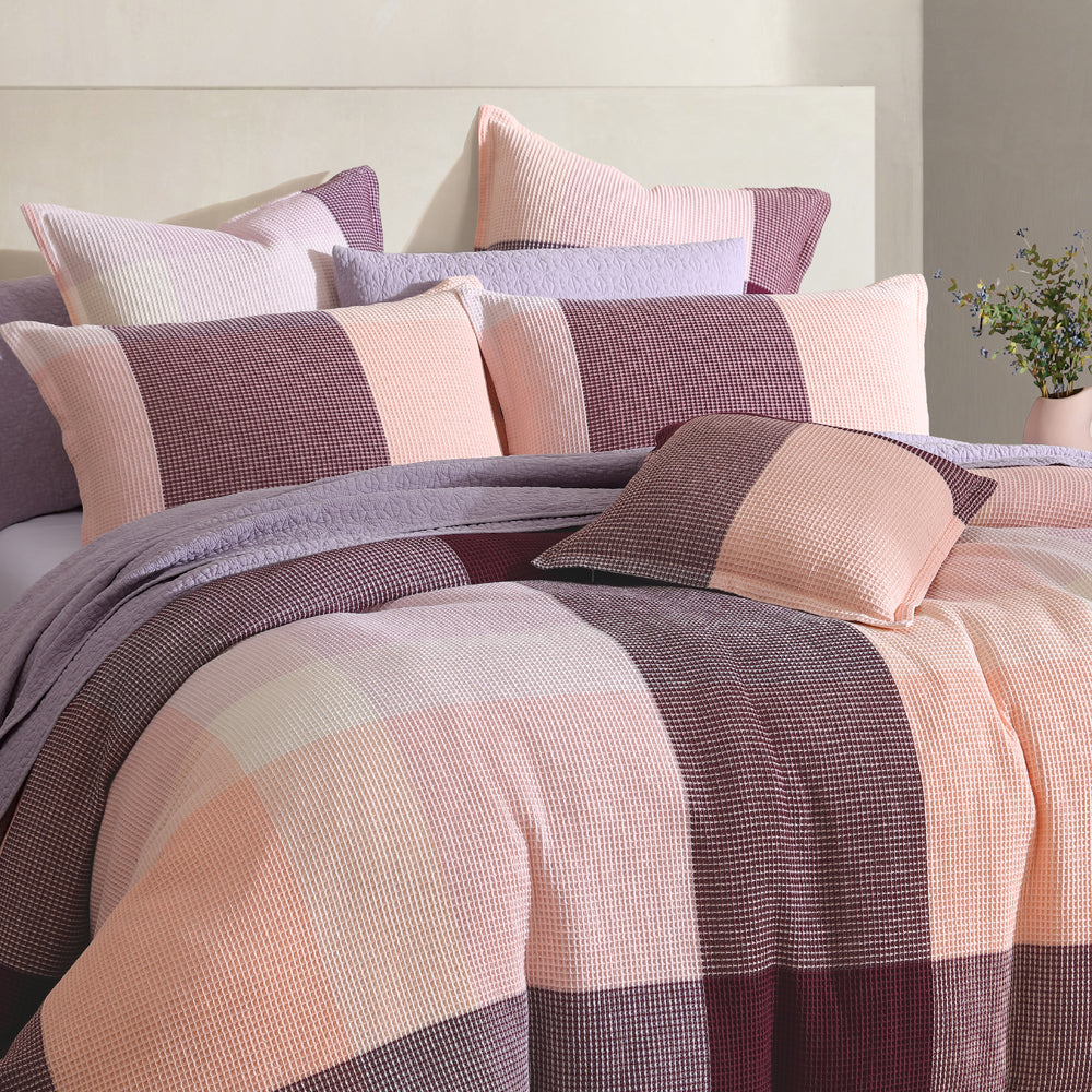 Platinum Logan and Mason Sadie Blush Queen Bed Quilt Cover is a bold statement in colour, pattern, and texture. It features an oversized check in on-trend colours of blush or forest, accentuated by a soft and lofty waffle texture. Ideal for cosy winter nights.