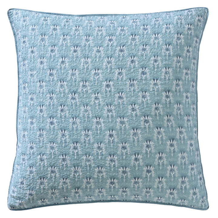 Platinum Logan and Mason Santa Fe Teal European Pillowcase featuring a crinkle texture in tranquil blues, aqua, and teal tones, adorned with a textured repeat pattern for a touch of Coastal charm. The distress-textured fabric adds character, and the reverse side, dyed to match, completes this stylish ensemble for a serene and textured bedroom retreat.