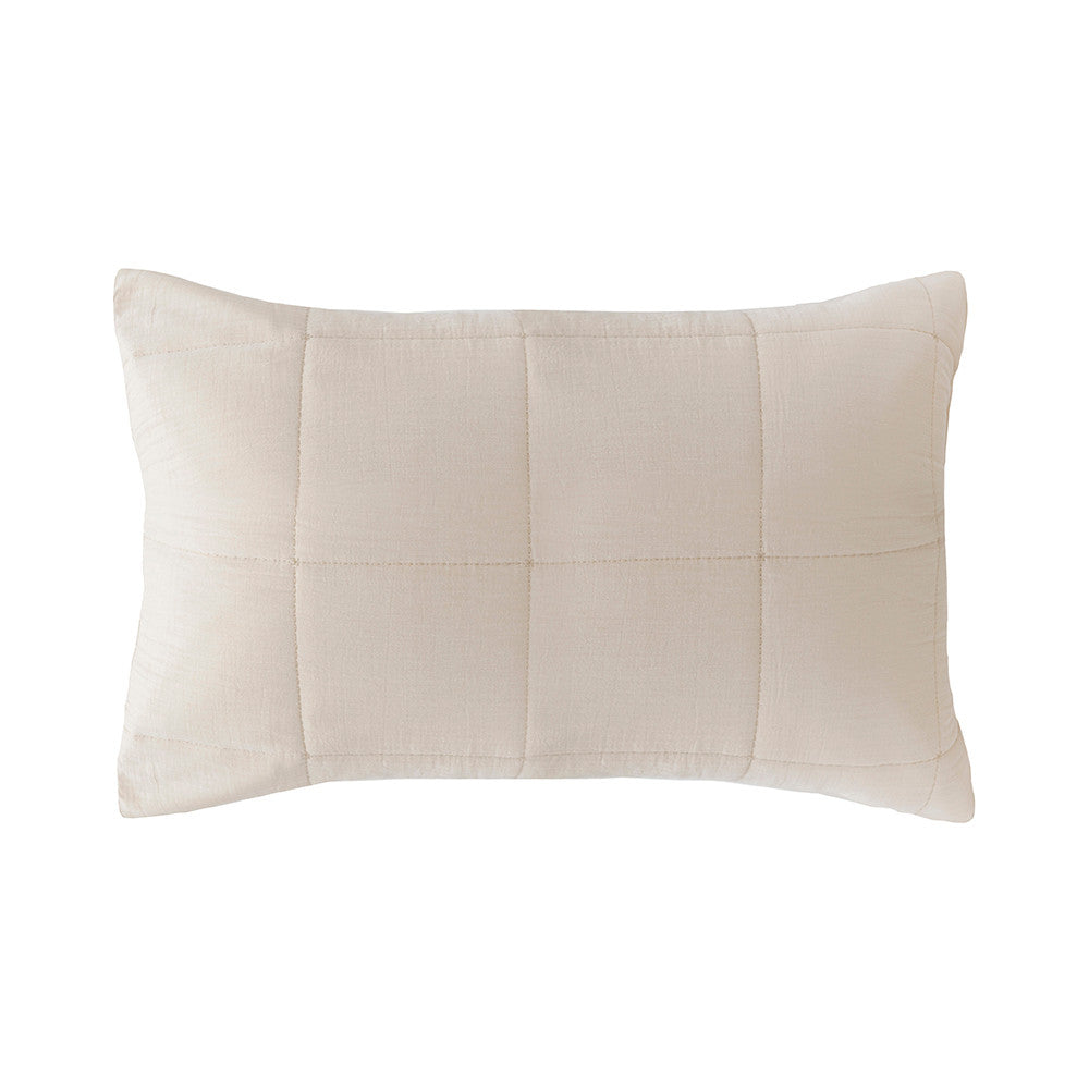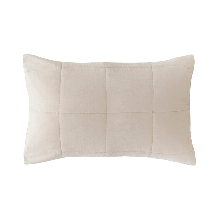 Bambury Stanton Queen Bed Quilt Cover Set features a divinely soft layer of fine cotton fabric which has been quilted into large checks. The soft stone colour of the design combined with the large quilted checks create a lofty cloud-like appearance and a serene atmosphere within the bedroom. The neutral colour of Stanton also provides the perfect canvas for layering with textural cushions and throws in any colour of your choosing. The reverse side of this design is a soft cotton percale fabric in the same stone colour as the front of the design.