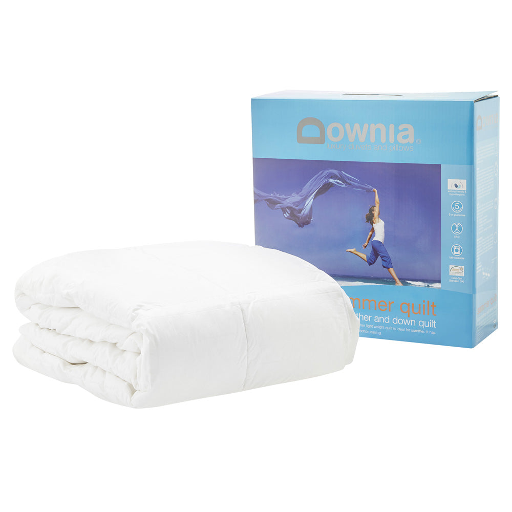 This 30% white duck down and 70% duck feather lightweight Double Bed duvet is ideal for summer. It has a sewn through construction with a soft downproof 233 thread count cotton casing.