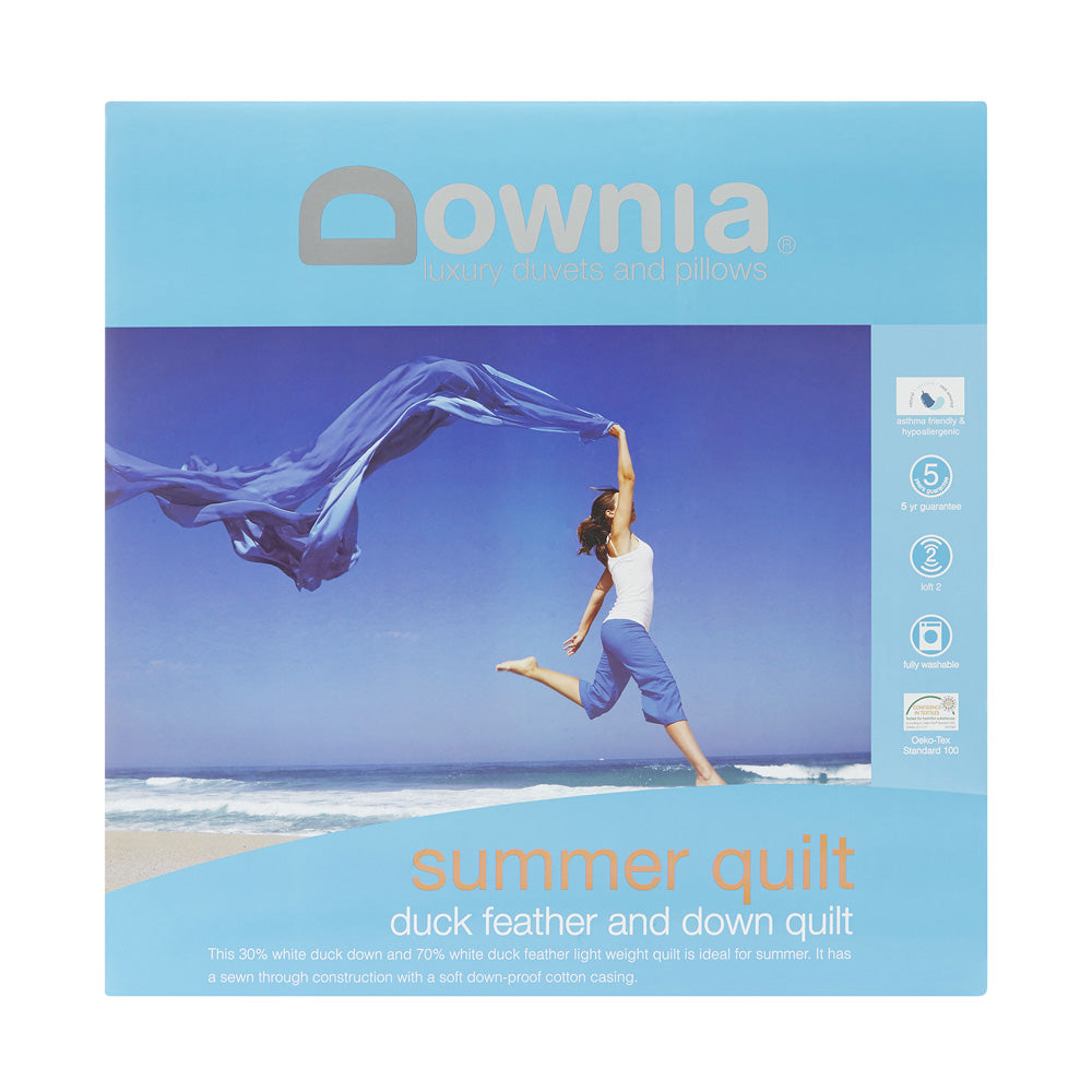 This 30% white duck down and 70% duck feather lightweight King Bed duvet is ideal for summer. It has a sewn through construction with a soft downproof 233 thread count cotton casing.