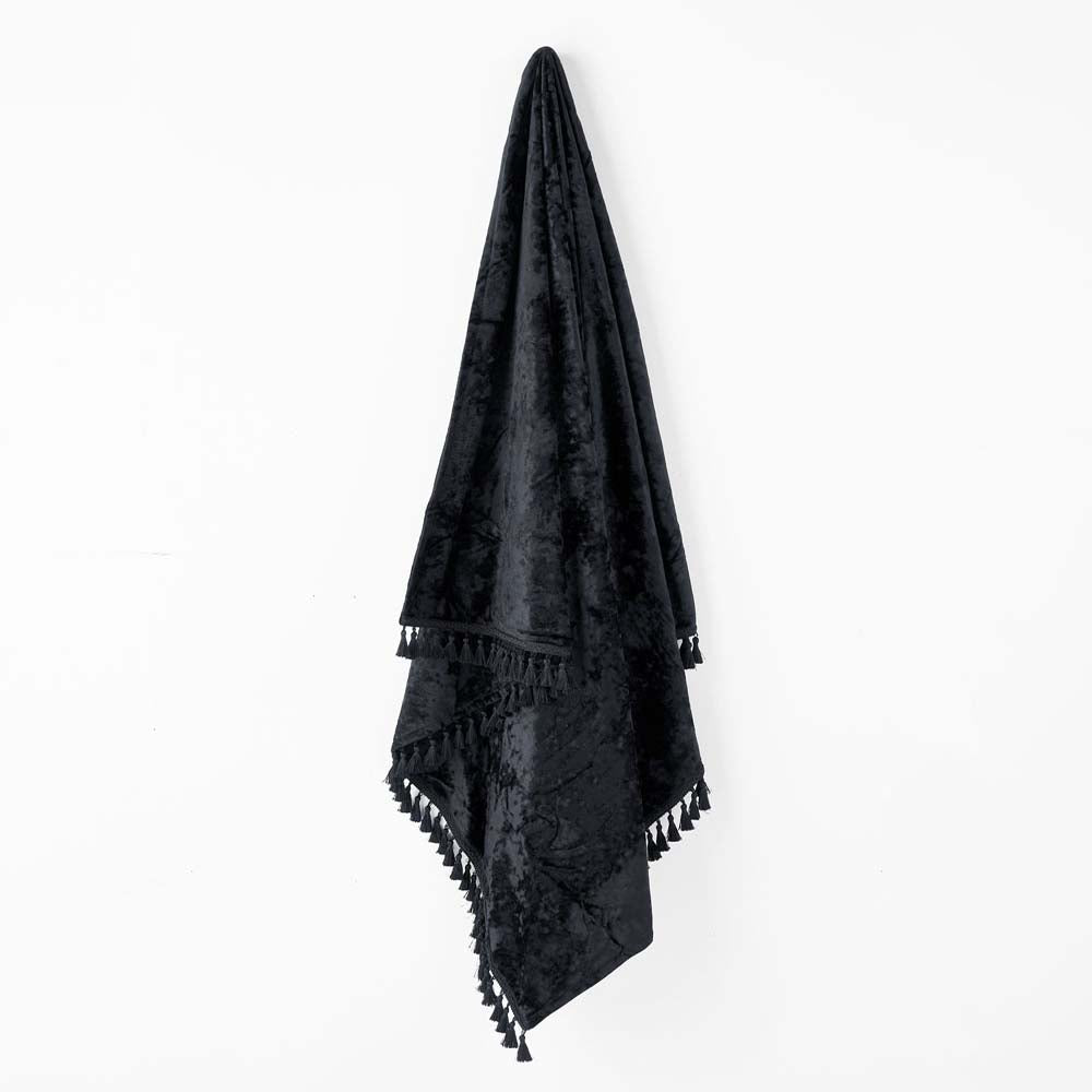 Grace by Linen House Teramo Black Throw is designed to make a palatial statement. Teramo is made from an incredibly soft crushed velvet in dramatic black for sought-after extravagance. With its classic border of decorative tassels, it will drape ever-so elegantly over your bed, sofa or anywhere luxury will be appreciated.