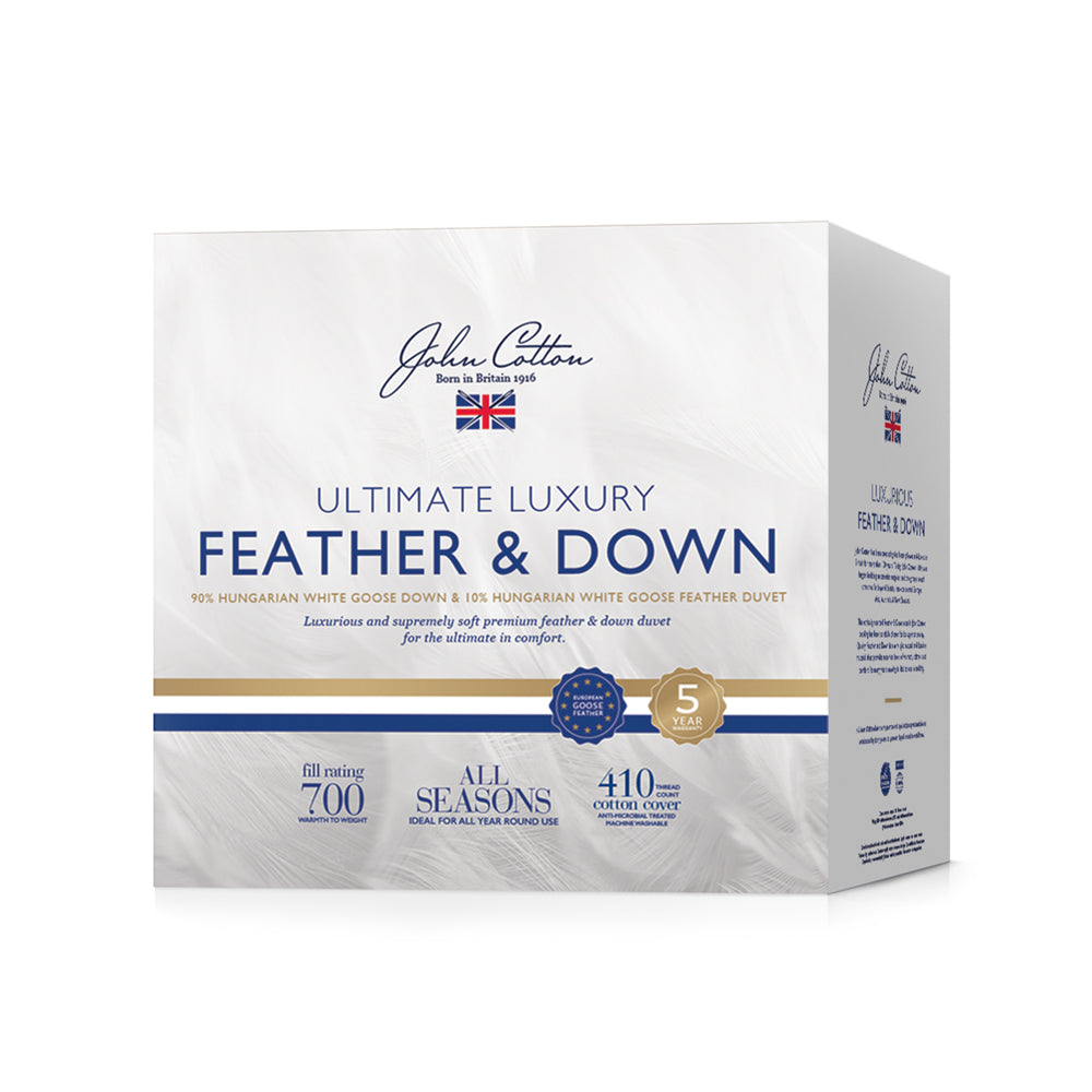 Ultimate Luxury Hungarian 90/10 Goose Down & Feather Queen Bed Quilt is considered one of the most luxurious due to its larger size and higher quality of the down, providing excellent warmth without the weight. For those who love the sumptuous sleeping experience with a filled blend of 90% Hungarian White Goose Down and 10% Hungarian White Goose Feather encased in a soft 410TC down-proof fabric. Anti-Microbial treatment inhibits the growth of bacteria, mould and dust-mites.