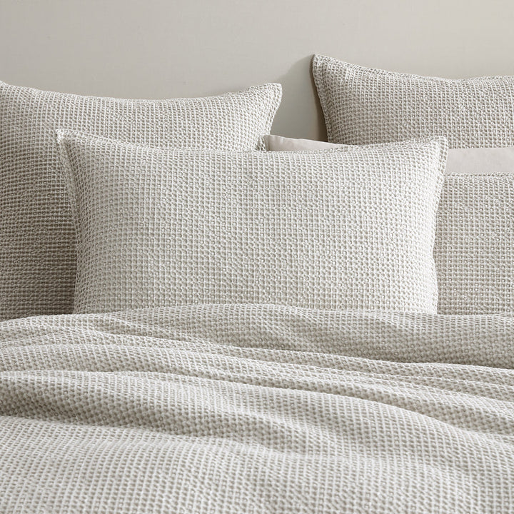Private Collection Urban Stone Queen Bed Quilt Cover Set is sure to become an essential staple in homes, this waffle captures chunky texture, versatile styling and comfort all in one. Urban showcases four seasonable colours, Stone, Charcoal, Steel and Surf, stonewashed to enhance the waffle texture and 3D effect.