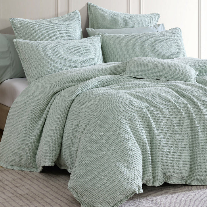 Private Collection Urban Surf Super King Quilt Cover Set is sure to become an essential staple in homes, this waffle captures chunky texture, versatile styling and comfort all in one. Urban showcases four seasonable colours, Stone, Charcoal, Steel and Surf, stonewashed to enhance the waffle texture and 3D effect.