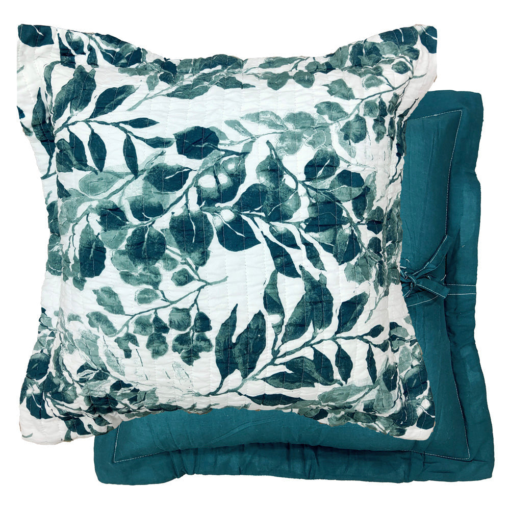 Classic Quilts Willow Whispers European Pillowcase features a beautiful leaf pattern. This european pillowcase enjoys a palette of tonal blue and green hues, inviting a peaceful environment into your bedroom.