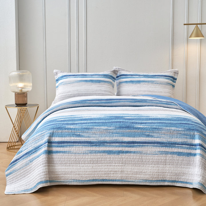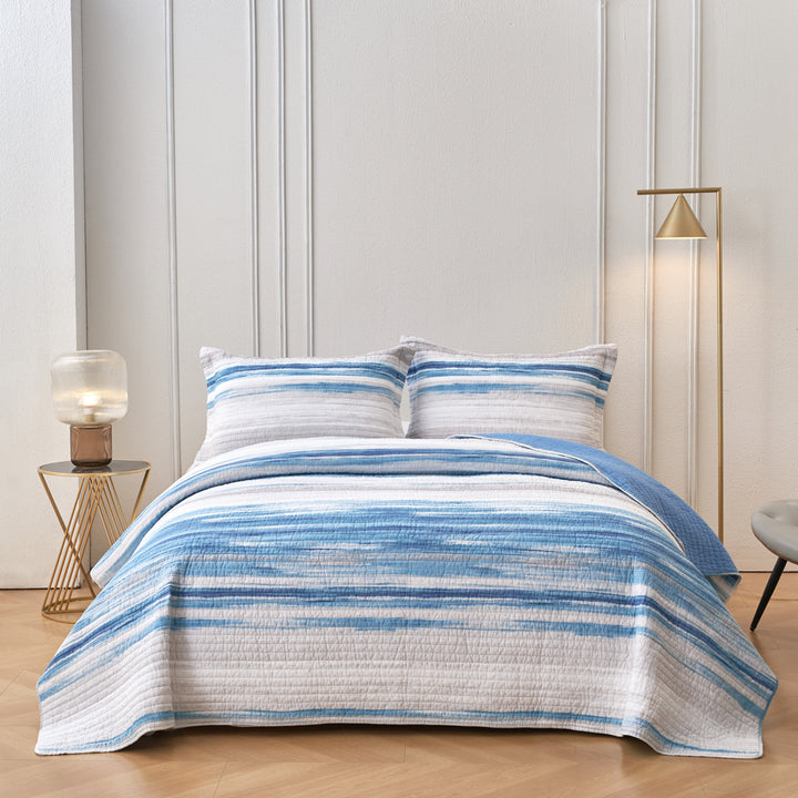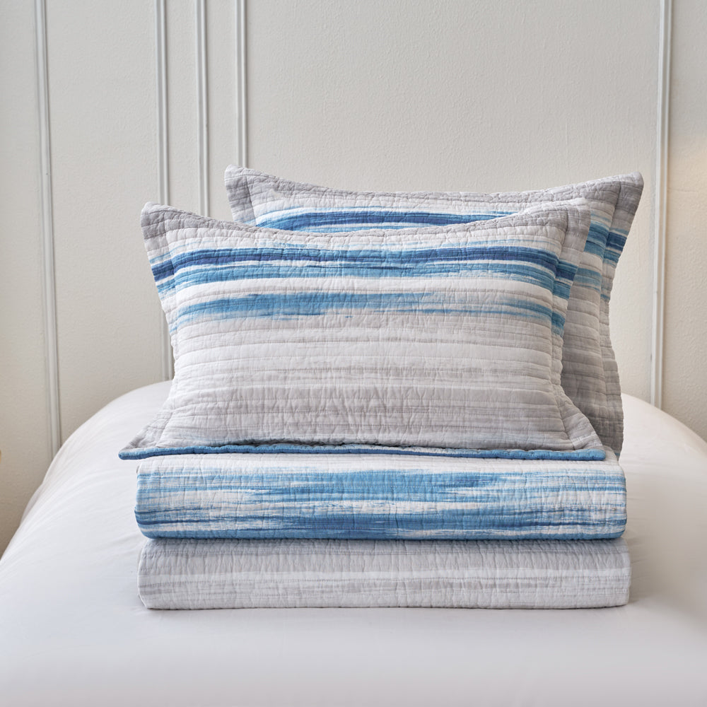 Classic Quilts Windsor King Bed Coverlet Set is a transforms your bedroom into a serene oasis. Crafted from 100% cotton, this coverlet offers superior comfort and breathability. Its soothing design features a blend of blue, white, and grey stripes, evoking a sense of calm and relaxation. The slightly quilted texture adds a cozy touch, making it perfect for all seasons. Whether you're updating your bedroom decor or adding a layer of warmth, the Windsor Coverlet's elegant simplicity and quality craftsmanship will enhance your sleep experience. Embrace the tranquility and comfort of the Windsor Coverlet and elevate your home decor effortlessly.