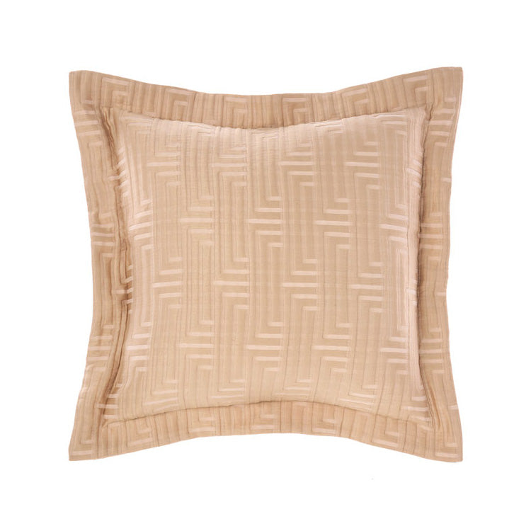 Grace by Linen House Winston Gold Square Filled Cushion enjoys a traditional geometric in a woven satin matelassé.