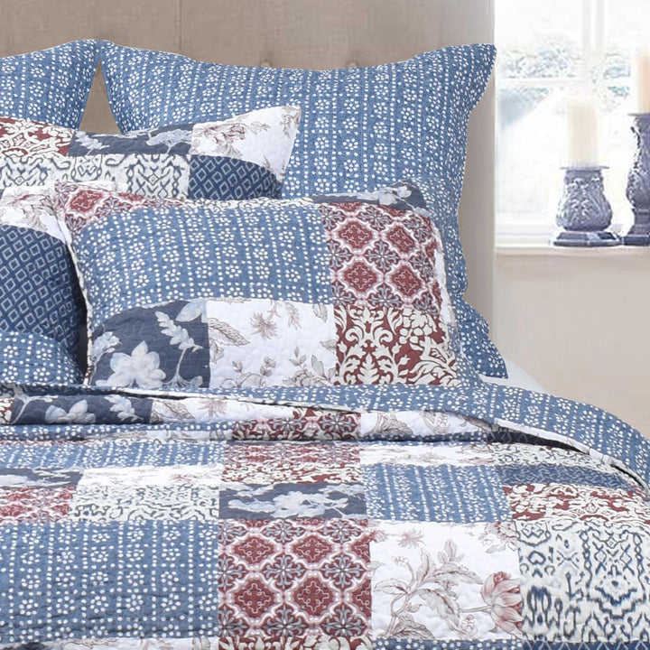 Classic Quilts Winton Queen Bed Coverlet Set features a beautiful chequered design. The design is printed on a cotton outer, and contains a light-loft cotton fill for breathability and comfort. The reverse is a geometric design on a blue coloured background, to ensure that the coverlet coordinates with your bedroom.